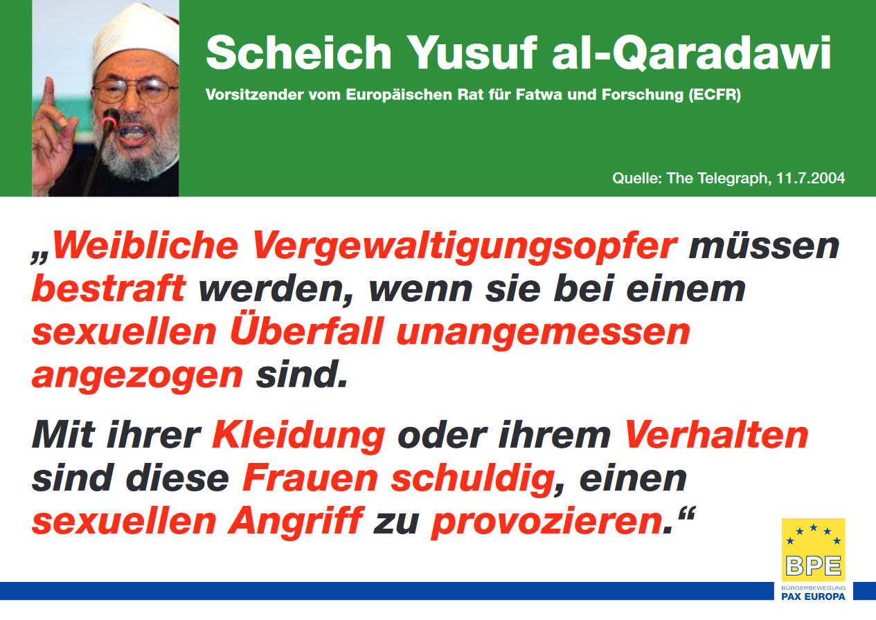 „Ich wundere mich immer wieder darüber, wie zum Beispiel die Grünen mit einer unglaublichen Pose für Gleichberechtigung und für Frauenrechte einstehen, und dann werden sie plötzlich ganz still, wenn es mal darum geht, mal über das Familienbild im Islam zu sprechen und mal darüber offen zu sprechen, was da denn auch für ein Frauenbild in diesen Gesellschaften teilweise herrscht. So, und darüber müssen wir sprechen, das müssen wir ansprechen, und wir müssen es versuchen zu ändern. Und das genau versuche ich zu tun.“