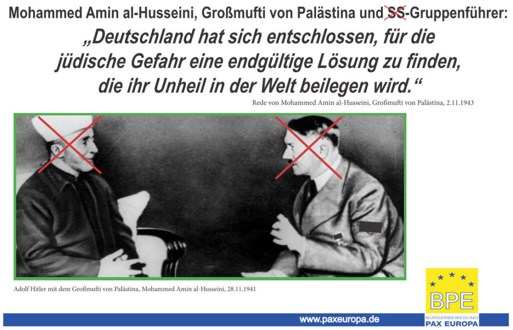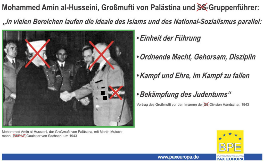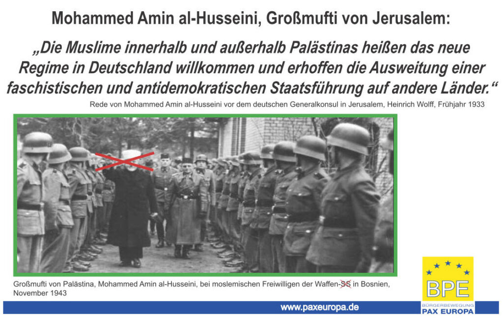 Der Großmufti hatte auch die SS-Division „Handschar“ mit über 30.000 freiwilligen Moslems gegründet und fand die Machtergreifung der National-Sozialisten in Deutschland schon sehr früh als äußerst lobenswert: