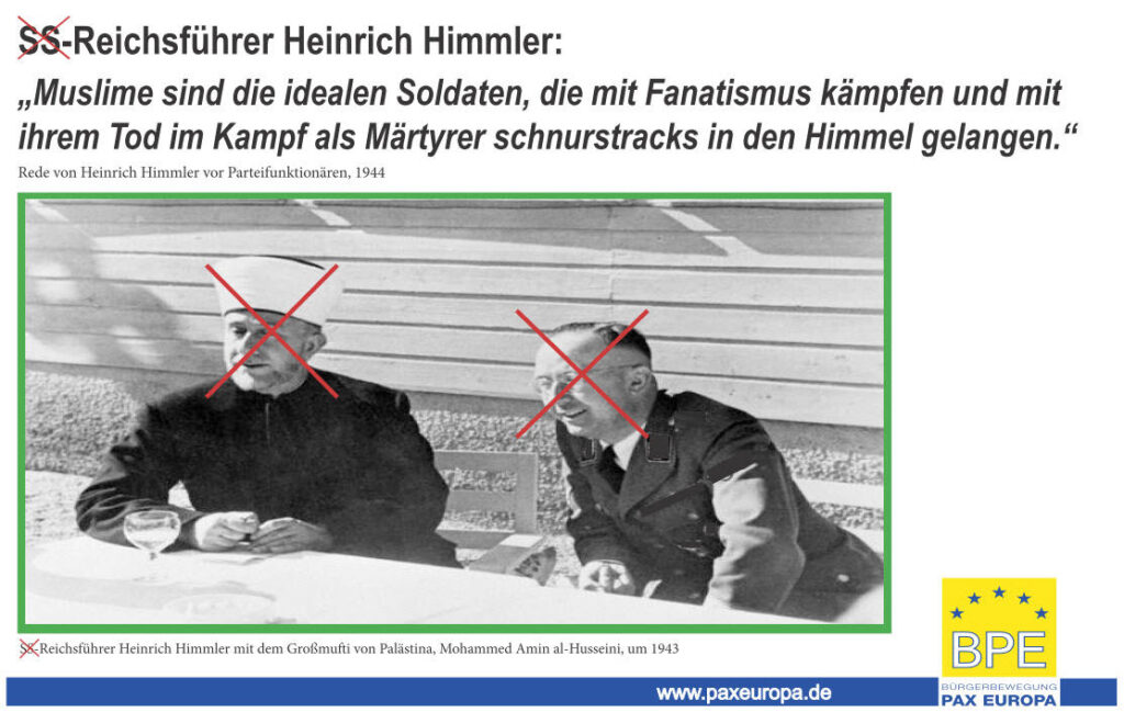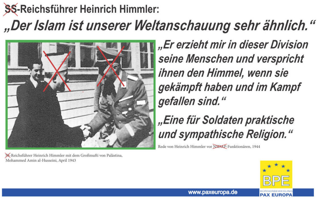 Auch SS-Reichsführer Heinrich Himmler sah vor allem auch in den kämpferisch-militärischen Aspekten ideologische Gemeinsamkeiten zwischen dem National-Sozialismus und dem Politischen Islam: