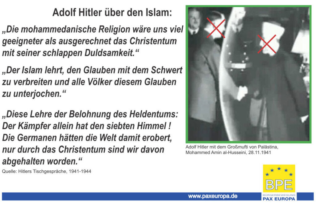 Hitler wiederum sah im Politischen Islam viele Aspekte, die seiner national-sozialistischen Gesinnung entsprachen: